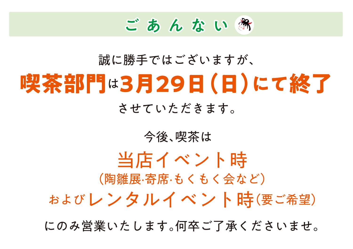 にのみ営業いたします。上記の通り、お雛さま展・淳平寄席・もくもく会は今後も継続していきますので、変わらぬお付き合いのほど、宜しくお願い申し上げます。